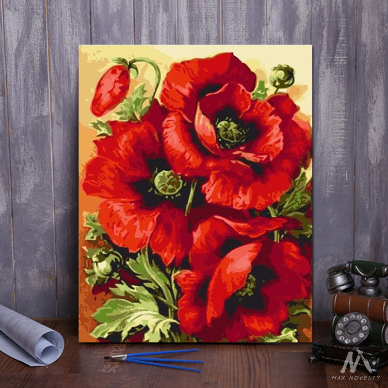 Red Flowers Diy Paint By Number Paint By Numbers For Adult
